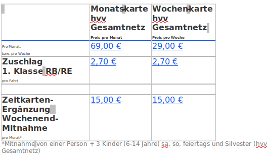 Владелец абонемента Deutschland Ticket может по выходным и праздникам брать с собой ещё одного взрослого и до 3 детей 6-14 лет в пределах зоны действия тарифов HVV, купив на данный месяц доп. билет за 15 евро (нижняя строка таблицы).