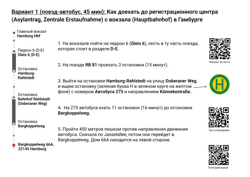 Центр приема: Bargkoppelweg 66а, принимает круглосуточно. С животными нельзя! Схема проезда: